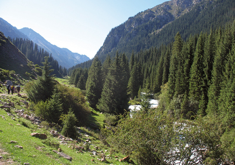 Ganztägige Exkursion zum Ala Artscha-Nationalpark, einer großartigen Gebirgslandschaft im Kyrgyz Alatoo, mit reißenden Wildbächen, Bergtaiga-Komplexen aus lichten Tienschan-Fichtenwäldchen, Gebüschen und Wiesensteppen, mit riesigen Schutthängen, Krummholz-Hochstaudenfluren, Gletschern und bis zu 4.895 m hohen Gipfeln. Der Name Ala Artscha ("bunter Wacholder") verweist auf die großen Bestände gleich dreier Wacholderarten. Die Flora des Nationalparks umfasst 900 Pflanzenarten. Zur Säugerfauna zählen Murmeltier und Roter Pfeifhase, Sibirisches Reh und Sibirischer Steinbock. – Die Vogelfauna bietet uns u.a. Pallaswasseramsel, Taiga-, Tienschan-, Pamir- und Grünlaubsänger, Purpurpfeifdrossel, Zippammer, Wacholderkernbeißer, Karmingimpel und Rosenmantelgimpel. Vielleicht sehen wir heute auch schon den ersten Bartgeier. Wenn es die Zeit erlaubt, besuchen wir noch die Gedenkstätte Ata Bejit, die an die Grausamkeiten unter Stalin im Jahre 1938 erinnert. In der Umgebung der Gedenkstätte kommen Indischer Pirol und Schwarzstirnwürger vor. (F, M, A)